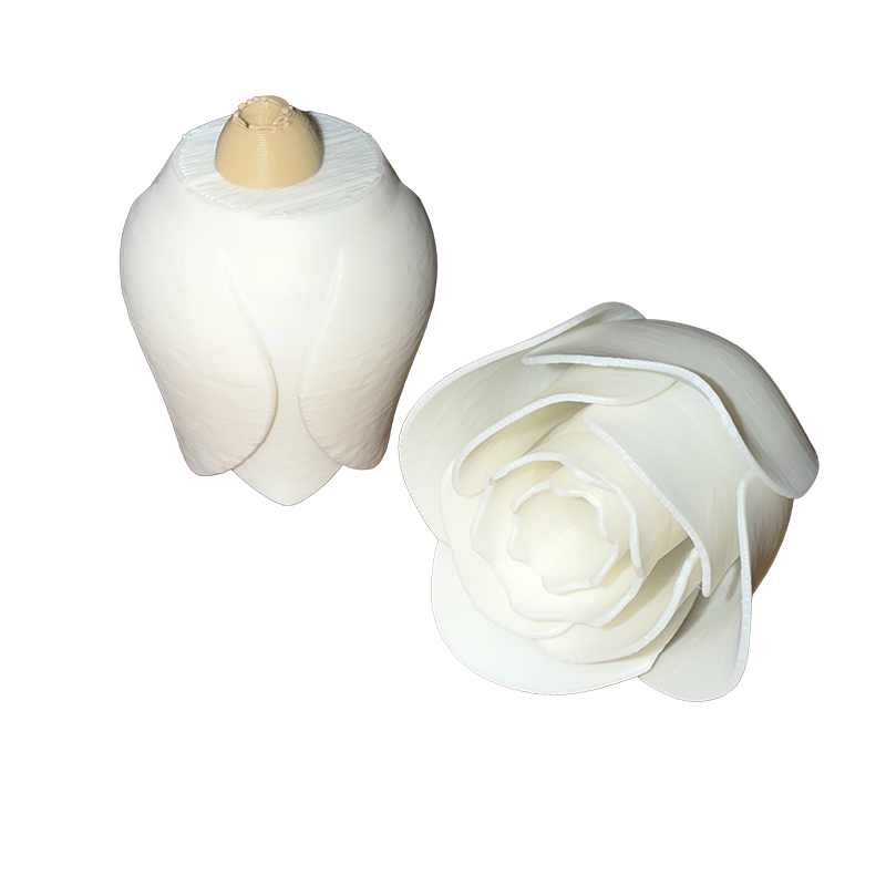 Diese digitale 3D-Druckdatei ermöglicht die Herstellung einer filigranen Blüte mit ruhiger, zeitloser Formensprache.